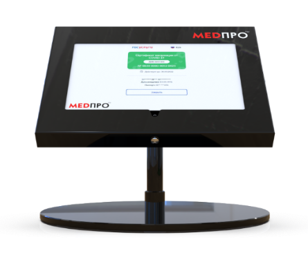 Устройство проверки вакцинации по qr (куар) коду производится через портал ГОСУСЛУГ получая сводную информацию по сертификату. Терминал МЕДПРО при проверки отсекает все ссылки в QR коде сертификата COVID вакцинации за исключением портала госуслуг, тем самым сканер QR-кодов МЕДПРО исключает результаты поддельных фишинговых сайтов и сообщает о том, что сертификат недействительный.